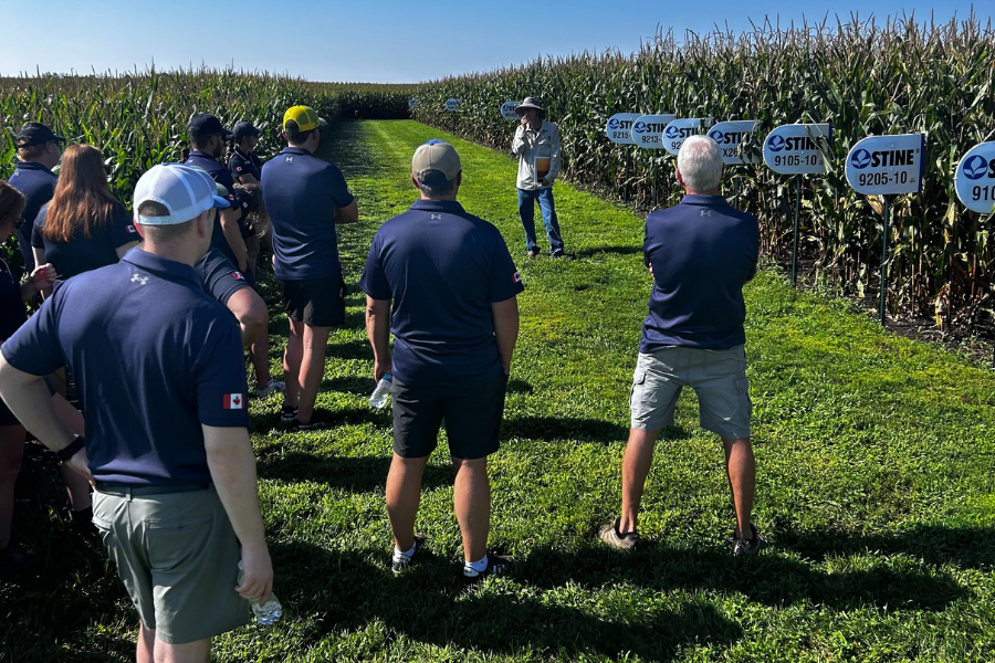 The following day, we were given a detailed look at Stine Seed’s world-class breeding programs at the Stine Seed Farm. We observed their labor-intensive, hands-on research methods and saw the advanced equipment used for breeding corn and soybeans, including a massive 120-foot planter and a custom-built corn harvester. CEO Harry Stine wrapped up the trip by sharing his personal story of growing up on a farm and building the successful company. This trip provided invaluable insights into Stine Seed’s dedication to innovation, quality, and customer satisfaction, which will help us communicate these values with confidence to our growers in Canada.